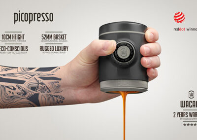 The Picopresso is a significant upgrade to Wacaco’s predecessors; Minipresso and Nanopresso. Increased double shot capacity, commercial grade filter basket, metal components and luxurious materials.The Picopresso is for barista enthusiasts want to master the art of espresso making by dialling in coffee grind size, tamping, and perfecting espresso shots. Your reward? An authentic cafe-quality espresso.