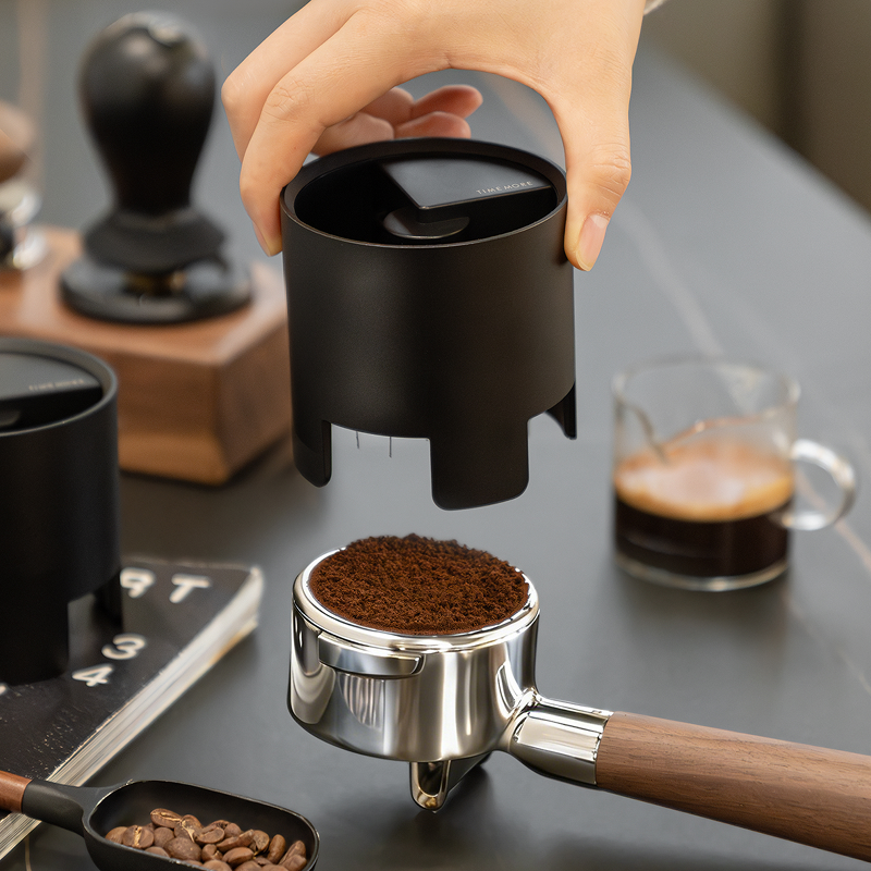 - A level tamp. Using a self-levelling calibrated tamper like the Timemore Impulse Tamper, ensures you tamp like a champ every time.