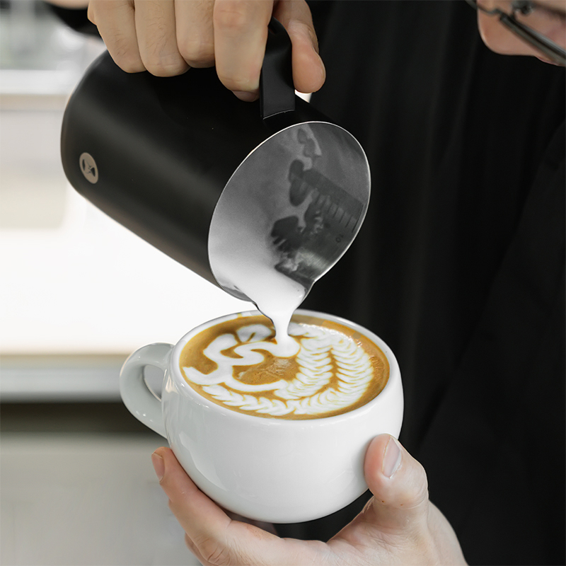 - Flared outer spout lip: The flared spout channels milk from to a point, allowing you to effortlessly shape your flow at the tip.
